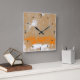 Modern Orange Gray White Abstract Square Wall Clock