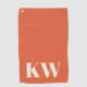 A stylish and personalised golf towel featuring a vibrant warm orange sunset background with bold monogram initials. Designed for golf enthusiasts, this durable towel is perfect for keeping clubs clean while adding a touch of elegance to any golf bag. A great gift for golfers, tournament prizes, or a thoughtful Mother's or Father’s Day present.
