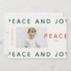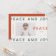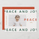 Minimal and modern "peace and joy" one photo Christmas card in festive orange and green with fun big type!