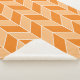 This cosy sherpa blanket features a trendy geometric herringbone pattern in peach, orange, and white.