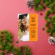 Our modern orange foil graduation announcement card features an eye-catching class year layout. Add photo, name, and school of your graduate.