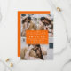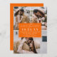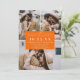 This stylish save the date card features a modern and romantic design, perfect for announcing your special day. The card is divided into four photo slots, allowing you to showcase your 3 favourite engagement pictures or couple moments in a collage format. The central text area is elegantly framed and highlights the essential details of your wedding date in a chic, contemporary font. The light orange accents add a touch of boho luxury, while the bright burnt orange background keeps the overall look clean and sophisticated. Ideal for couples who want to share their love story with a personalised touch, this card is both beautiful and memorable, setting the perfect tone for your upcoming wedding.