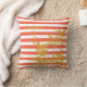 Modern Orange Stripes Gold Coloured Floral and Nam Cushion