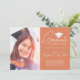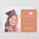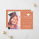 Send your family and friends a unique personalised photo college graduation card to wow them. This template design features your custom photo on the left and to the right a white grad cap sitting on the word "Graduate" written in a hand lettered white font. Personalise your class/year, name, degree and other ceremony details on a classic orange background. Designed by Susan Coffey.
