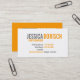 Modern both side print Business Card design with big letters where text for name is grey and the text for last name is orange colour. The background of the front side is white. Under name is text for your title or speciality, which is orange colour matching the colour for last name. Under this text are address and contact numbers texts with matching but switched colours. The same goes for e-mail and web address, the place for website address can be filled with tag text. On the back side the background is orange with only name and last name, where last name changes to white. Very contemporary professional fresh and clean design. It is also available in modern lime green colour, as seen below, the image is also a link to it.
