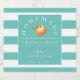 Rustic watercolor orange and leaves, modern orangecello beverage label. Labels feature, chic teal and white stripe pattern background.