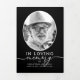 Honor the cherished life of a loved one with this elegant photo funeral program for a man or woman, thoughtfully designed for memorial services, celebrations of life, and remembrance ceremonies. Featuring a refined black background and soft script overlays like "Always in our hearts," “Forever loved,” and “Words of comfort,” and "Thank you," this folded program creates a respectful and heartfelt presentation. With space for two large, prominently displayed photos and fully customizable text sections, it accommodates the order of service, obituary, acknowledgments, and a poem, prayer or quote. The minimalist monochrome layout lends a timeless, dignified look while keeping the focus on the life being remembered. Whether you're planning a traditional service or a modern life celebration, this template offers flexibility to suit any tone or setting. Ideal for printing as a keepsake for guests, this funeral program provides a meaningful way to commemorate your loved one’s memory while guiding attendees through the ceremony with grace and clarity.