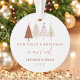 Modern Our First Christmas Tree Engaged Photo Ornament