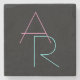 Modern Overlapping Initials | Pink Turquoise Black Stone Coaster