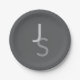 Modern Overlapping Monogrammed Initials | Grey Paper Plate