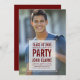 Bold Modern Burgundy and White Male Graduation Party Invitation. Bold Typography Overlay Design with Photo. Graduation Party Invitation for him with a simple clean design. Perfect, flexible template design for high school grad, college graduate, or university graduates. Add your party information, name and other details. Design by Elke Clarke© Other colours or background colours available.