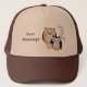 The trucker hat features a pair of cheerful owls in cool modern colours. Personalise with your own witty message.