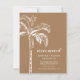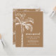 Tropical moving announcement featuring a palm tree set on a brown background with a matching back.
