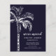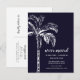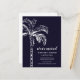 Announce you move to your friends & family with our modern palm tree card. Our tropical moving announcement features a beautiful white sketched palm tree set on a bluish black background. Visit our shop to view our entire moving collection.