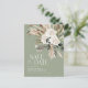 Modern barn farmhouse rustic botanical bohemian natural, sage green pampas grass and eucalyptus botanical wedding save the date invitation.
