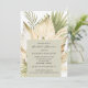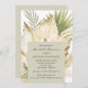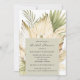 Boho desert bouquet bridal shower invitation with hand-painted watercolor palm fronds, pampas grass, white orchids and dried leaves in natural earth tones. Coordinating invitations and accessories available in store.