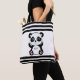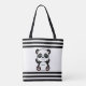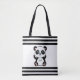 Modern panda bear and black and white striped Tote Bag. Fashion Grocery Bags. Trendy black and white shopping bags.