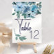 Modern Pastel Blue Watercolor Wedding Table Number