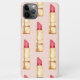 Modern Pastel Pink & Red Lipstick Pattern Girly iPhone Case