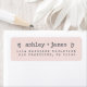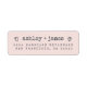 Chic, modern and simple wedding return address label with your names in off-black modern typography on a pastel pink background with a stylish touch of hand drawn hearts. Simply add your names and address. Exclusively designed for you by Happy Dolphin Studio.