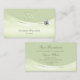 Luxurious and elegant business card design featuring pastel green colours decoration with a glamourous sparkling diamond and light sage green background.