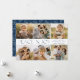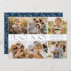 Share your favorite memories with this Modern Peace and Joy Navy 6 Photo Collage Holiday Card. The front features a six-photo collage with “Peace and Joy” displayed in alternating light and dark blue lettering. Personalize with your holiday greeting, family name, and year. The back displays a white winter foliage pattern against a navy blue background, adding a festive finishing touch. Perfect for families who want to showcase multiple photos in one modern Christmas card.