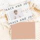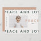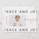 Minimal and modern "peace and joy" one photo Christmas card features a natural colour palette and fun big type.