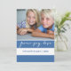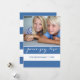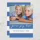 Simple stripes nautical photo holiday card. Send out your holiday greetings to family and friends with this versatile, bold, modern holiday photo card with the words "Peace, Joy, Love" written in a white script font on bold striped pattern. Design by ELKE CLARKE© FOR MONOGRAMGALLERY. Replace sample photo with your own. Preppy blue and white striped background on back of card. Other colours available in store or on request.