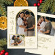 Elegant Gold Arch 3 Photo Peace Love and Joy Christmas Holiday Card. Celebrate the season in style with this elegant family photo Christmas card featuring a modern gold colour arch-shaped photo frame. Personalise it with your favourite family photos, family name, and the year on neutral off white or cream beige background. The festive minimalist design is highlighted with elegant faux-gold colour "Peace Love and Joy" calligraphy text, creating a warm and timeless look. The back showcases one photo and holiday message template with hand lettered name. A perfect holiday card to share with family and friends in winter holiday season.