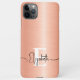 Protect your phone in style with our Modern Peach Fuzz Brushed Metallic Monogram Script iPhone 11 Pro Max Case! Featuring a chic peach fuzz brushed metal background, this case showcases a bold white monogram followed by an elegant black script name. Perfect for personalising your phone and making a statement! This sleek and durable case is an ideal gift for birthdays, office coworkers, bridal showers, bachelorette parties, bridesmaids, and more. Plus, the design is available for various models, catering to both Samsung and Apple iPhones, ensuring everyone can enjoy a touch of elegance. Upgrade your phone's look with this modern and sophisticated monogrammed case!