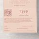 Customisable modern peach QR Code All In One Invitation. Includes RSVP with a scannable QR code that you can link to your wedding website. Generate your own unique QR code via the "personalise this template" feature on the product page. Add your URL to the area provided and a brand new QR code will generate on the design just for you.