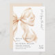 "She's tying the knot" theme bridal shower invitation with an elegant fall coloured bow and a modern minimal design