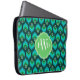 Modern Peacock Feather Pattern Monogram Laptop Sleeve