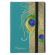 NOTE: This is a flat printed image, there are no layers, jewels or metallic inks use - however it is a very realistic graphic rendition. COLOR PALETTE: turquoise teal, gold brushed metal look, tan, emerald green, lime, aqua, royal blue, and purple DESIGN COLLECTION: These elegantly swirled peacock feathers were hand painted in watercolor by Audrey Jeanne Roberts. The original artwork beautifully captures the iridescence of the feather in bright, deep jewel tones. There are graphically created diamond like jewels with a gold setting around them that are scrolled along the curve of the feathers. The background is a brushed metal pattern and your name is easy to personalise using the the custom template provided for simple customisation.