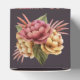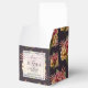Purple brown 2" square favour boxes feature your message on the front over elegant watercolor pink and gold peonies and greenery, beautiful for bridal showers favours, wedding couples showers favour boxes and more. MATCHING items in our store.