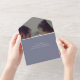 AVAILABLE WITH OR WITHOUT A QR CODE TO SCAN IN THE RSVP AREA OR WITH OR WITHOUT DINNER OPTIONS. This design is simple yet elegant, complete with the groom or bride's last initial on the outside flap. A transparent black overlay covers the photo you add. The bottom and back are a beautiful dusty periwinkle. Also add a customised QR code to your invitation so that gusts can quickly access your wedding Website for details, directions, menu options, and more, or add your gift registry Web URL. Personalised All-In-One invitations are a unique combination of both a beautifully printed custom invitation with an easy to tear off perforated RSVP postcard. And they are so easy to use! You simply fold, then seal the back flap with the three included clear stickers, and mail. And when your guests receive your custom invite, they just tear the perforated RSVP Card off and drop it back in the mail to you!