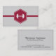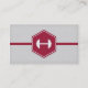 These simple & modern business cards are perfect for anyone in the fitness profession. The front features a lightly textured grey background. On top of the background is deep pink/red hexagon with a ribbon connecting it to the sides of the cards. On top of the hexagon is a white fitness weight icon. The back of the card has room for your name, job title & your personal details. This is a great card for any personal trainer!