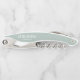 This design features personalised bridesmaid's name and title in white classic serif font style on sage green background.
