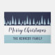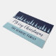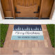 Modern Personalised Christmas doormat in blue and white with a Christmas tree pattern.
