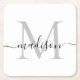 Modern Personalised Grey Monogram Script Name Square Paper Coaster