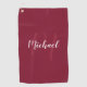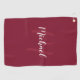 Modern Personalised Monogram and Name Burgundy Red Golf Towel