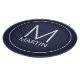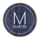 Modern minimalist design features personalised monogram and name in white modern sans serif font style on navy blue background.