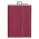 This flask features personalised groomsman's monogram and name with title and wedding date in white modern sans serif font style on burgundy red background.