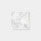 Modern minimalist design features personalised monogram and name in grey modern sans serif font style on white marble background.