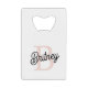 Introducing our Modern Personalised Monogram and Name Pastel Pink Credit Card Bottle Opener, a sleek and stylish accessory that combines practicality with a personal touch. Designed in a soft pastel pink and customised with your monogram and name, this credit card-sized bottle opener fits conveniently in your wallet or pocket, making it perfect for on-the-go use. Crafted from high-quality materials, it offers durability and ease of use, ensuring you’re always prepared for a refreshing drink. Ideal for personal use or as a thoughtful gift, this bottle opener adds a chic and personalised flair to any occasion. Explore our collection for more coordinating items and follow us for updates on new products. Contact us today to customise your own bespoke bottle opener or to learn more about our offerings.