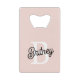 Introducing our Modern Personalised Monogram and Name Pastel Pink Credit Card Bottle Opener, a sleek and stylish accessory that combines practicality with a personal touch. Designed in a soft pastel pink and customised with your monogram and name, this credit card-sized bottle opener fits conveniently in your wallet or pocket, making it perfect for on-the-go use. Crafted from high-quality materials, it offers durability and ease of use, ensuring you’re always prepared for a refreshing drink. Ideal for personal use or as a thoughtful gift, this bottle opener adds a chic and personalised flair to any occasion. Explore our collection for more coordinating items and follow us for updates on new products. Contact us today to customise your own bespoke bottle opener or to learn more about our offerings.