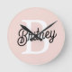 Modern Personalised Monogram and Name Pastel Pink Round Clock