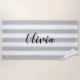 Create your own personalised beach towel with a custom elegant script monogram name and stripe pattern design.