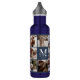 Modern Personalised Monogram & Photo Collage Blue 710 Ml Water Bottle