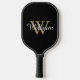 Bring a unique touch to the game while adding elegance and individuality with this modern and minimal personalised monogram pickleball paddle, featuring your name and initial in a blend of modern and script fonts set against a black background. A great gift choice for Birthdays, Christmas or anyone who values a personalised touch to their game.